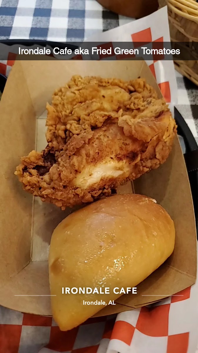 The Irondale Cafe truly lives up to its standard as the inspiration for local writer Fanny Flaggs 1987 novel Fried Green Tomatoes at the Whistle Stop Cafe. Today the historic cafe, renamed the Irondale Cafe, continues to serve up the best fried green tomatoes along with fried catfish, cornbread, fried and herb chicken, country fried steak, shrimp creole, chicken pot pie, pork chops and a wide variety of sides and Southern brewed tea, bottled beverages, lemonade and Red Bike Coffee. There is also a variety of desserts from which to choose. I highly recommend their historic fried green tomatoes that put all other attempts to shame. And diners can enjoy watching train activity across the street.