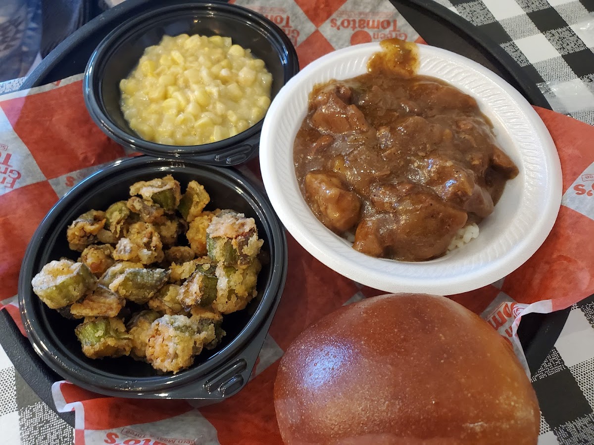 It was buffet style. You tell them what you want, and they serve you. I loved the fact that everything was in a separate dish. Everything we got was great! The seasoning was perfect for us. The chicken livers were fried to perfection The fried green tomatoes were crispy The restaurant was very clean and well kept. All around, excellent experience